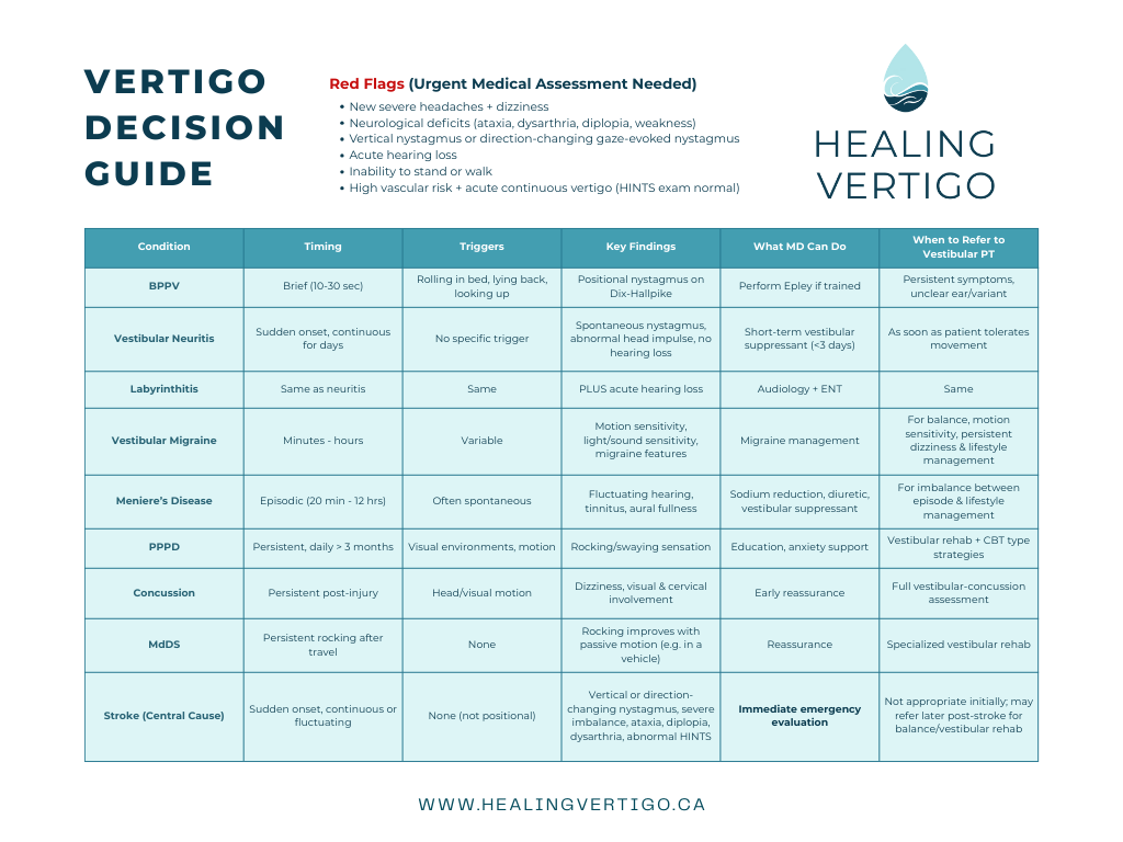 If the Dix-Hallpike test did not reproduce symptoms, or the nystagmus presented atypical (horizontal with no torsion component or wasn't present in room light), please refer to Vestibular Physiotherapy for Infrared Video Goggle testing.